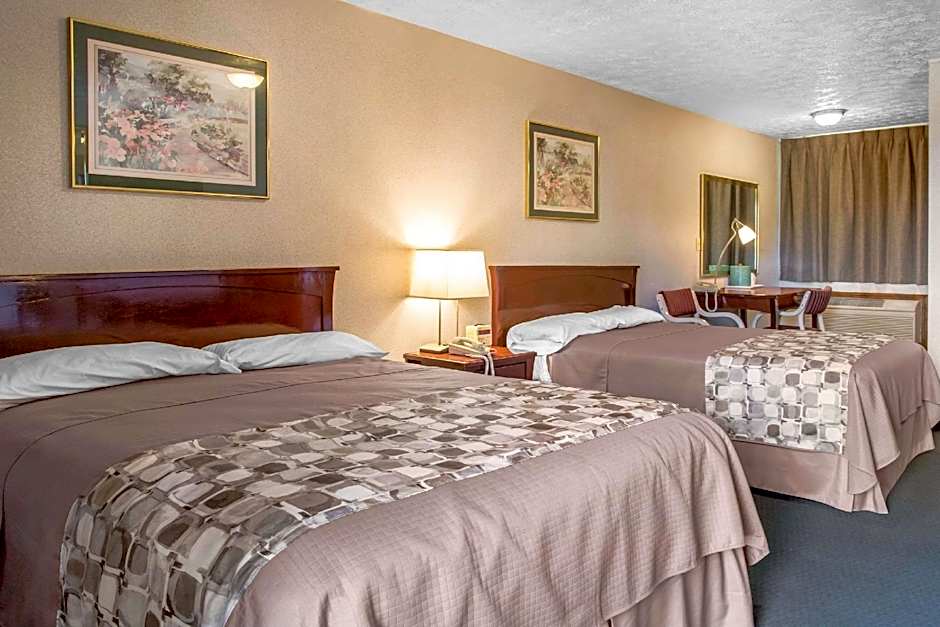 Room options span Standard Rooms, Queen Rooms, King Rooms, Deluxe Twins, and multiple Suites, catering to solo travelers, families, and larger groups. Standard Rooms accommodate up to 4 adults and 3 children; Queen Rooms seat 2 adults and 1 child with a Queen bed; King Rooms accommodate 4 adults and 3 children; the Deluxe Twin clocks in at 216 square feet with a Twin bed. For bigger parties, the Efficiency Suite measures 323 square feet and accommodates up to 8 adults and 5 children with a Double and a Queen bed, while the Queen Suite - Non-Smoking offers a Double and a Queen in a 312-square-foot layout.